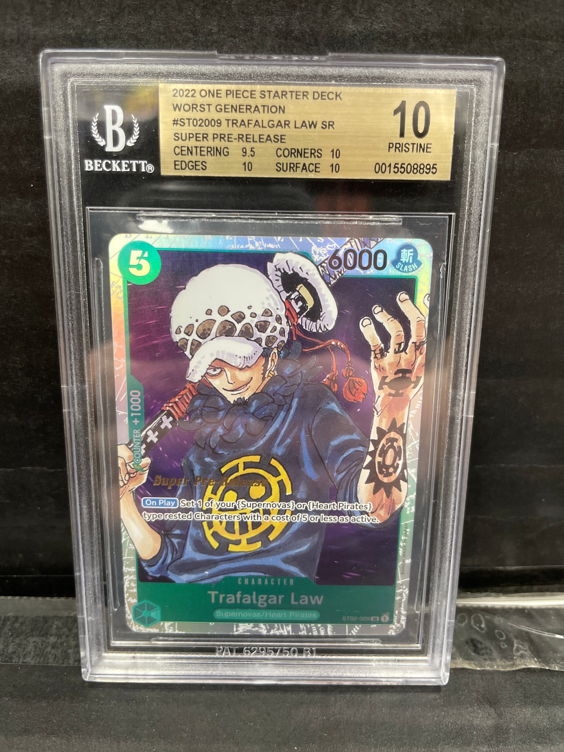 One Piece TCG Trafalgar Law SR ST02-009 Super Prerelease Beckett 10